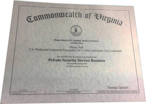 We’re called Richmond locksmith for a reason: we specialize in emergency lock & key services related to your security situation. When it comes to lockouts, we are first responders. We do automotive opening, residential opening, commercial opening, storefront opening – you name it. If you run into an emergency lock-out situation, like losing a key or locking your key in a car, home or an apartment, give us a call right away toll-free at 804-409-9058 , and we will be on our way to rescue you in as little as 15 minutes. You may call us day or night, 24 hours, 7 days a week.